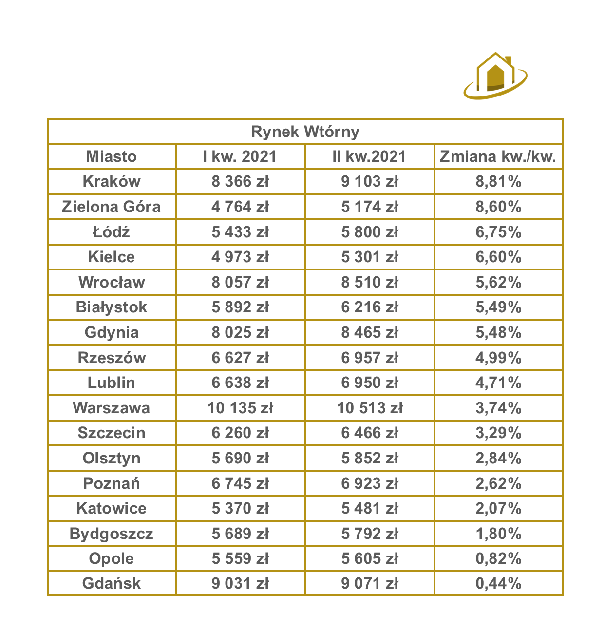 Warszawa, będąca największym miastem w Polsce dość mocno wyhamowała z cenami nieruchomości co nie znaczy, że nie odnotowano w niej wzrostów. Bardzo mocno dał o sobie znać Kraków, będący drugim największym miastem w Polsce oraz mający jedne z największych wzrostów w tym kwartale. Zielona Góra, będąca jednym z najmniejszych miast również daje o sobie znać – posiada jedne z największych wzrostów cen w Polsce.