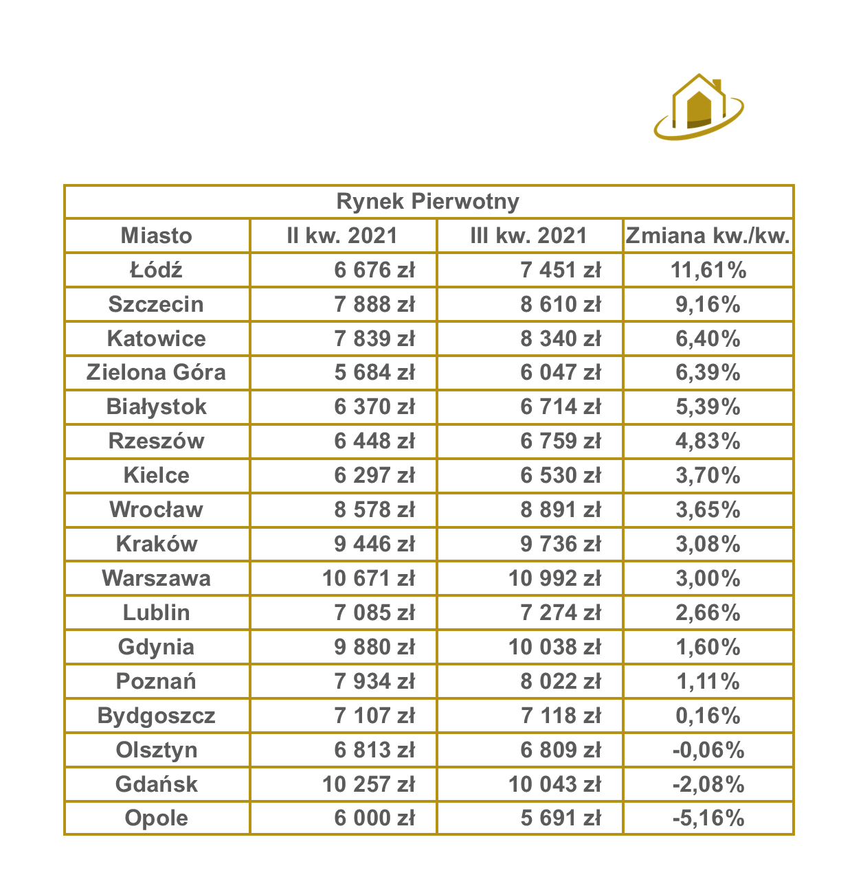 Ceny nieruchomości w III kwartale najmocniej wystrzeliły w Łodzi, ponad 11%, bardzo mocno także nieruchomości odbiły się w Szczecinie ponad 9%. Opole jako jedyne miasto w Polsce zalicza regularne spadki od kilku kwartałów, tym razem ponad 5% spadek.