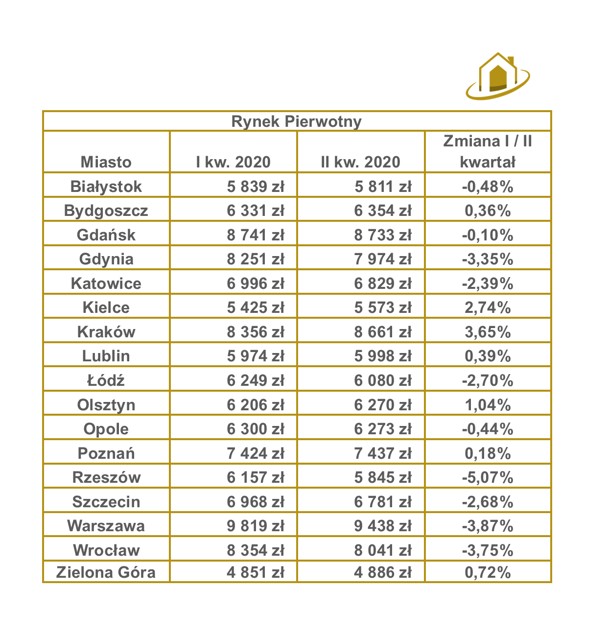 Ceny nieruchomości w II kwartale 2020 z niewielką korektą