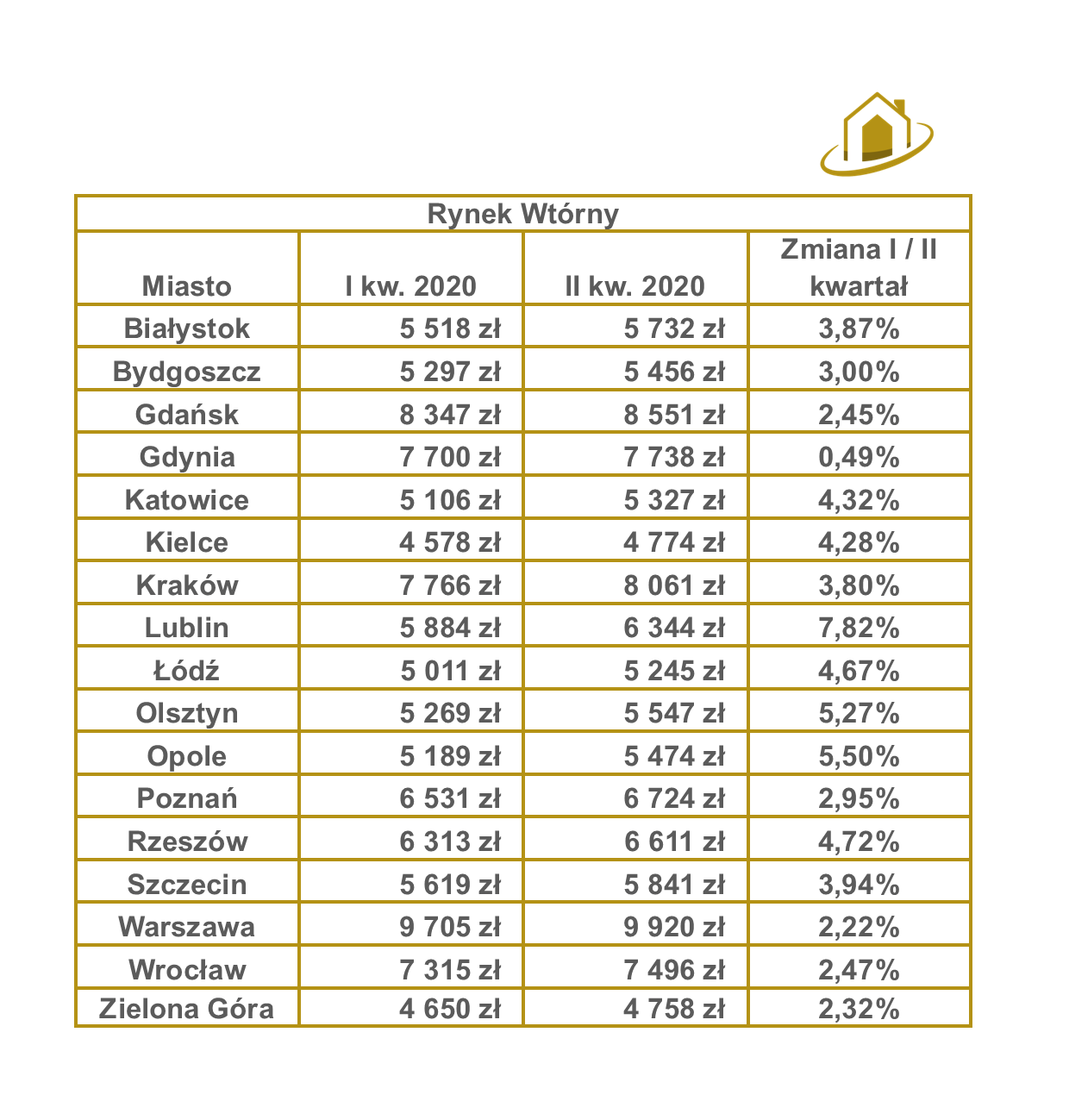 nadal odnotowuje stabilny wzrost cen. Największy wzrost cen widać w Lublinie, Opolu czy Olsztynie chodź nadal najdroższe mieszkania znajdują się Warszawie, Gdańsku czy Krakowie.