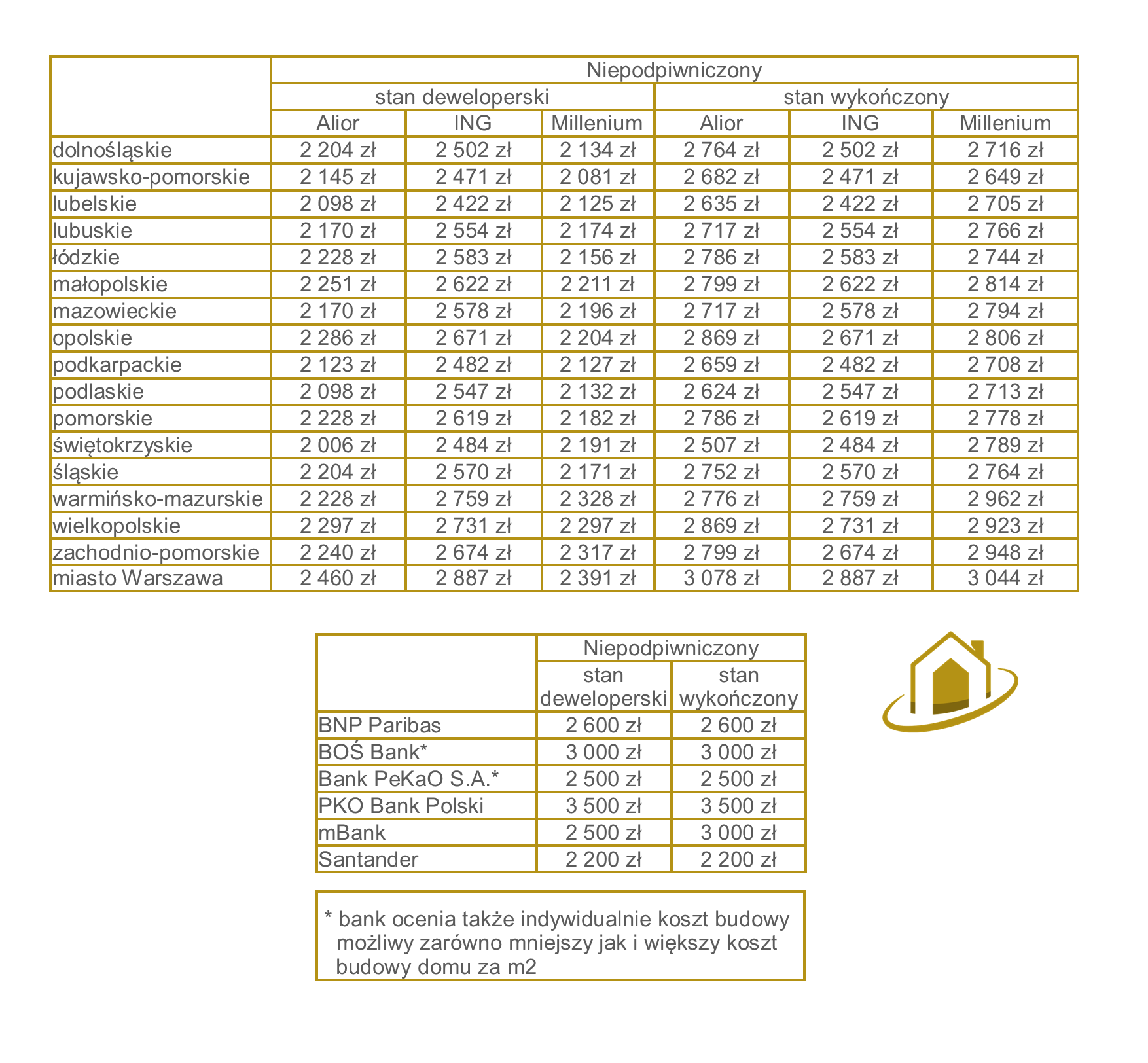 Ile obecnie kosztuje budowa wg. banków?