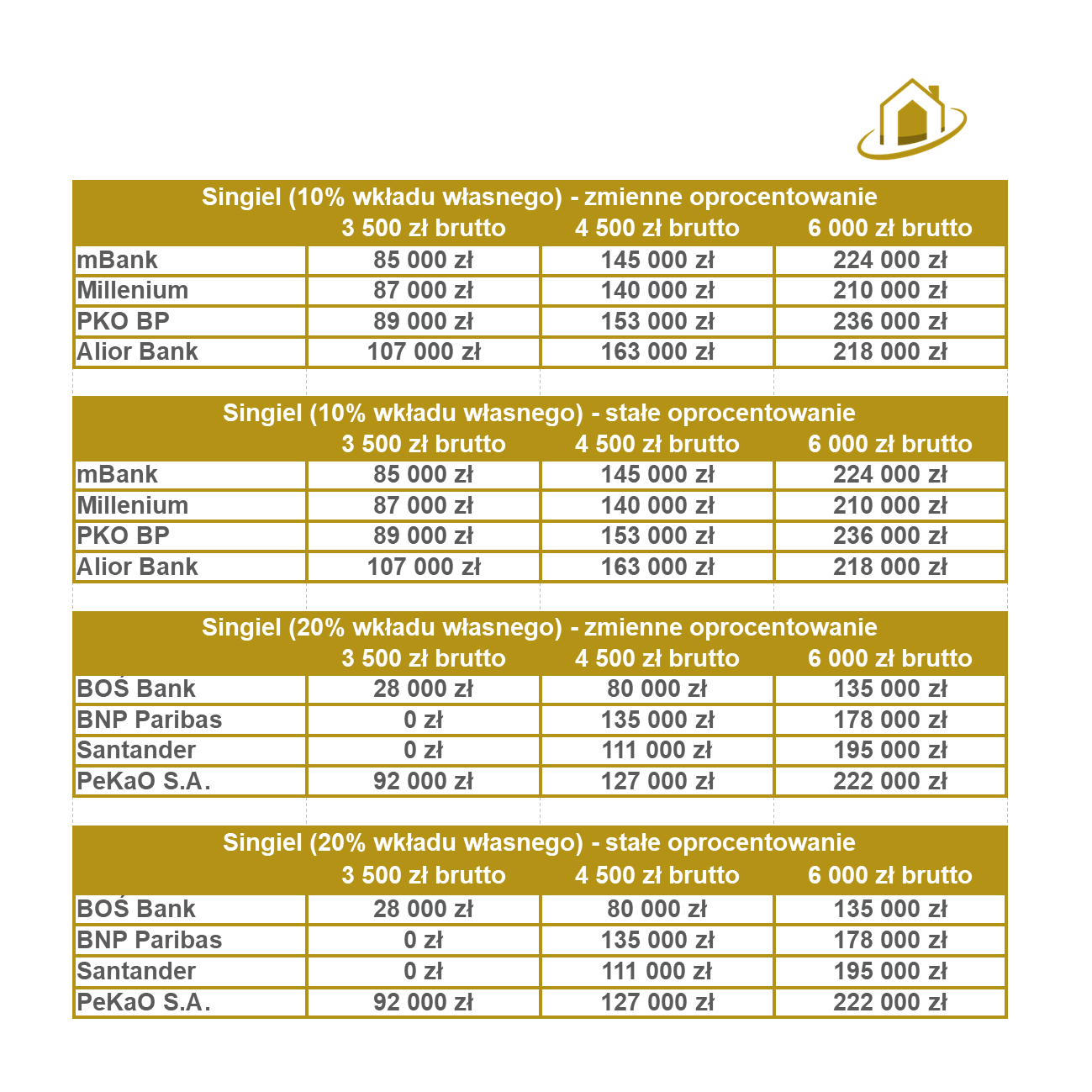 W powyższych zestawieniach zauważyć można poprawę zdolności kredytowej, chodź nie we wszystkich bankach.